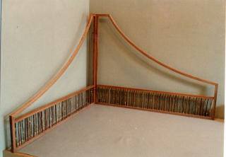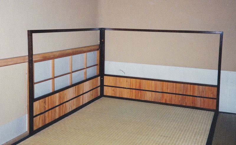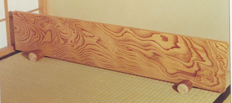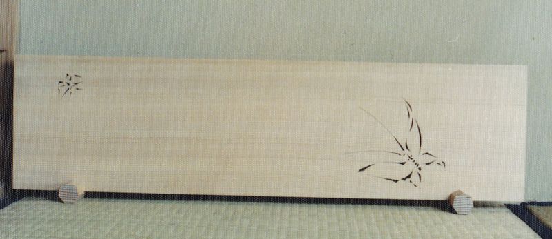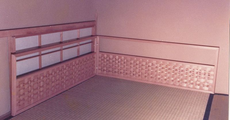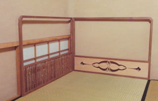 | くりもの、挽きものに加えて指物の修行を重ね、風炉先屏風や結界、炉縁など お茶室の四季折々を演出する道具も作りました。 木材だけでなく、竹やよしずなども使って涼感を出したり、いろいろ工夫をしました。 |