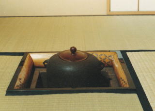 | 冬のお茶室に欠かせない炉。以前の炉縁は塗り物が多く使われていました。 しかし、ここにも木の素地の美しさ、素朴さをそのまま生かしてみました |